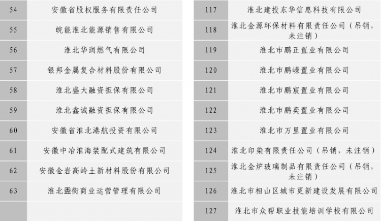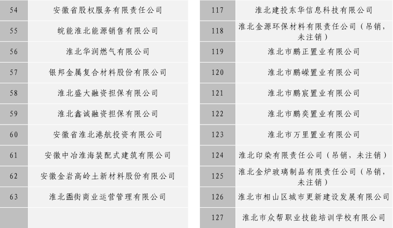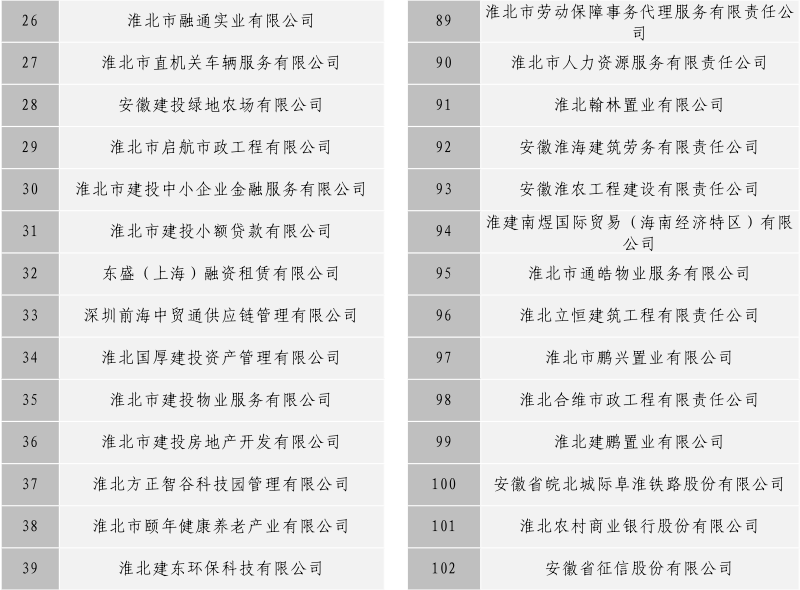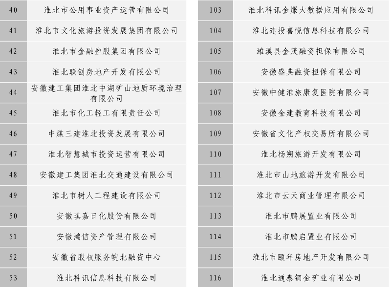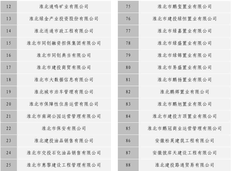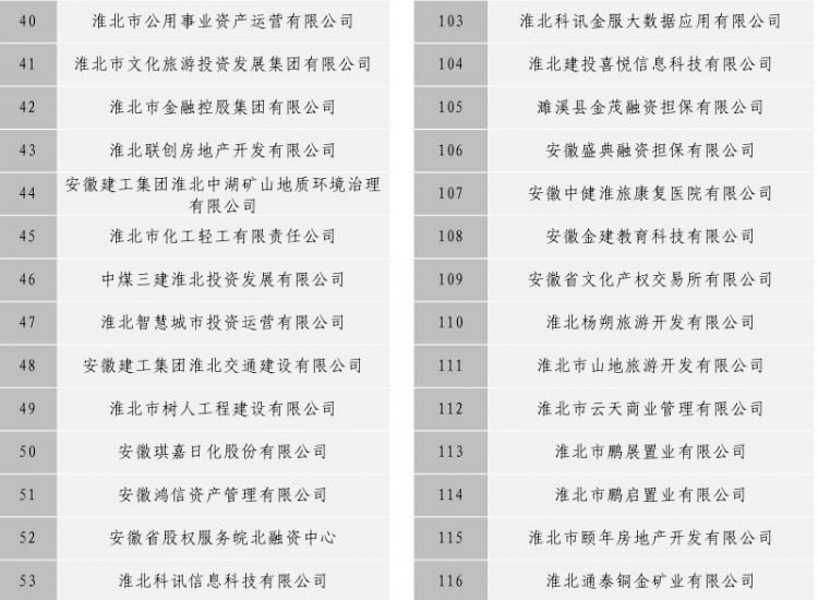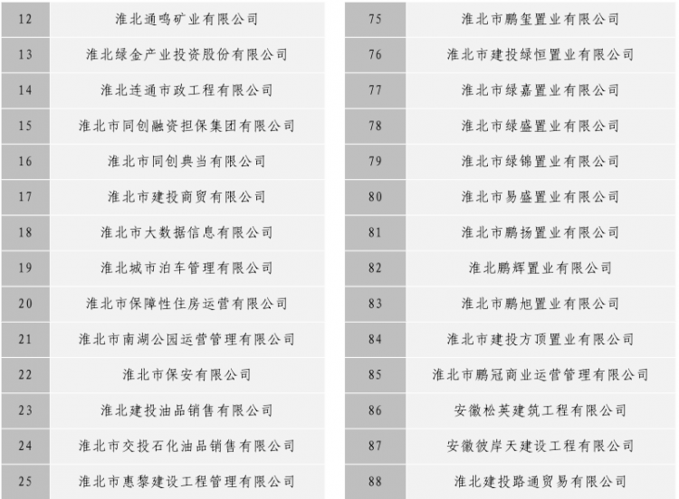 淮北市建投控股集團(tuán)有限公司全級(jí)次企業(yè)名單目錄