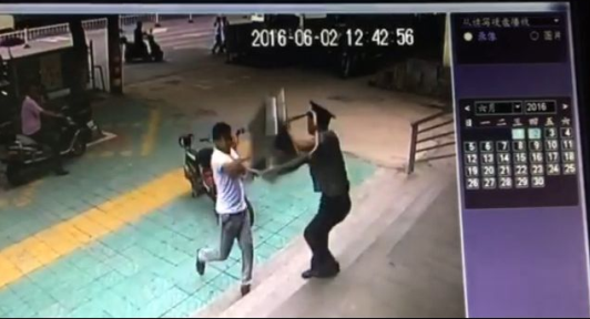 當(dāng)該男子逃跑至司法局樓下時(shí),又對(duì)建行淮東支行進(jìn)行打砸,我公司派駐隊(duì)員劉相迎立刻出門(mén)制止,此時(shí)楊玉柱也以趕到,兩人合力將該男子制服,并與隨即趕到的派出所民警一同將其押送至東區(qū)派出所。