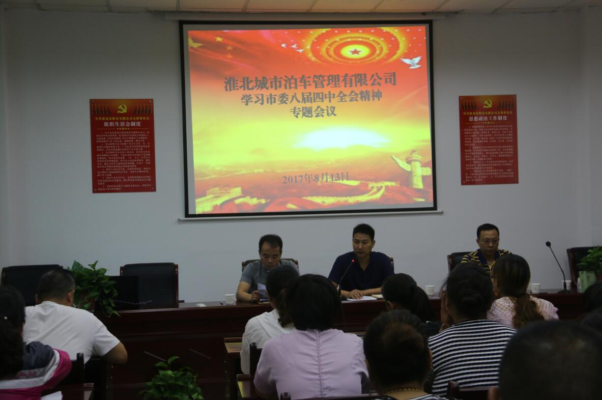 8月13日下午18時(shí),淮北城市泊車(chē)管理有限公司召開(kāi)全體人員專題會(huì)議,傳達(dá)學(xué)習(xí)市委八屆四次全會(huì)精神,研究部署貫徹落實(shí)全會(huì)精神的有關(guān)舉措。